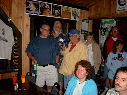 After a short break, Pete introduced the band and presented each member –- and the entire crew (Captain Toast, Little Toast, Sound Dawg and Skarekrow) -- with their own personally inscribed turkey call. These were handcrafted wooden boxes (about 12” long by 2” by 2”) with a moveable lid held by a single nail or peg. You move the lid slowly across the box to get the turkey-call sound. The guys all sounded off, gobbling and squawking simultaneously – at that point I suppose it would have been fitting to segue into Turkey in the Straw or something like that…